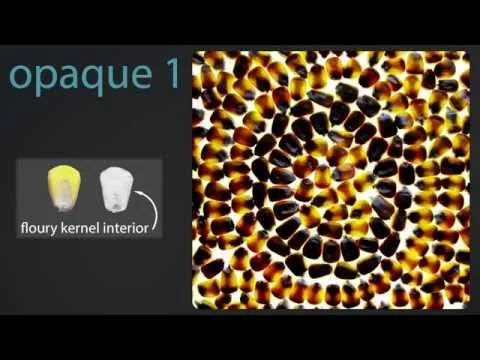 Floury Leafy ear shaved to reveal kernel composition. Approximately 25% of the kernels on each ear are completely floury.